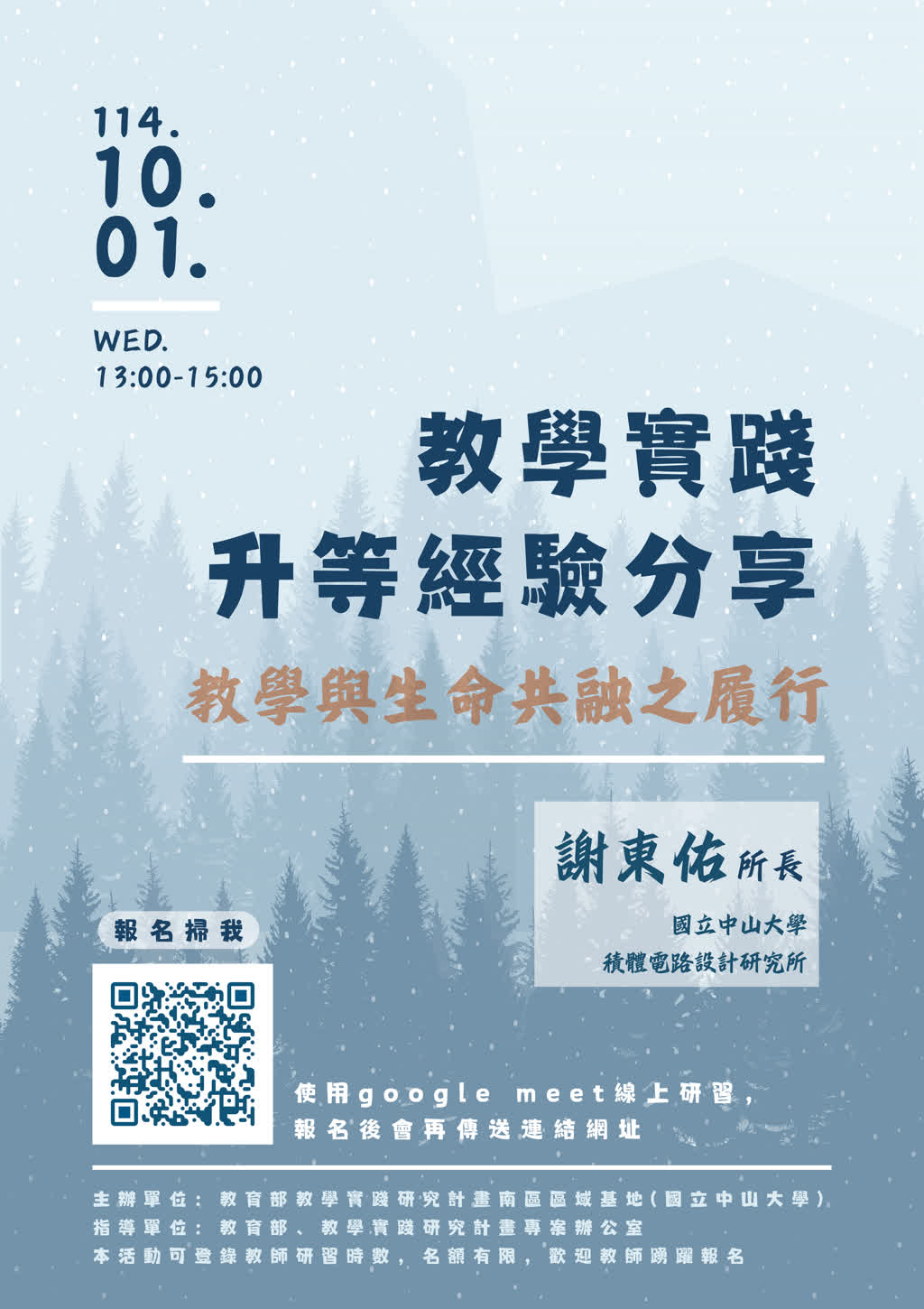 主 旨 【代公告】國立中山大學辦理三場次教學相關活動,敬邀全國大專校院教師踴躍報名參加 |