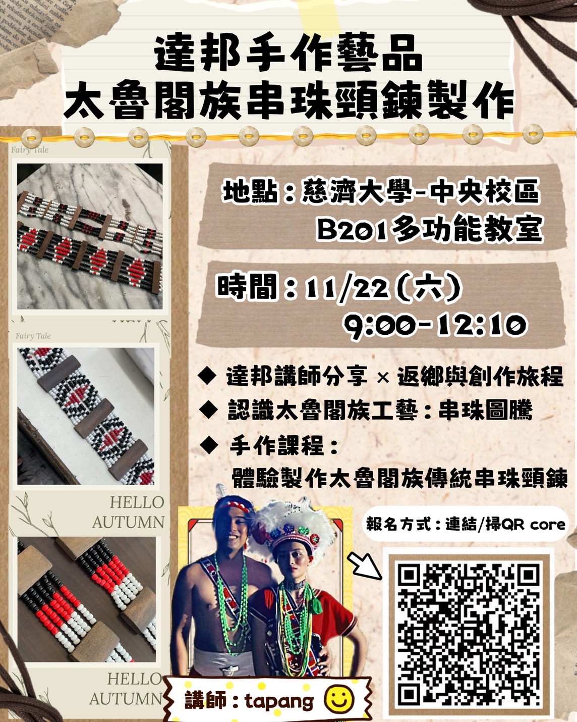✨代公告【達邦手作藝術|太魯閣族串珠頸鍊製作工作坊】✨