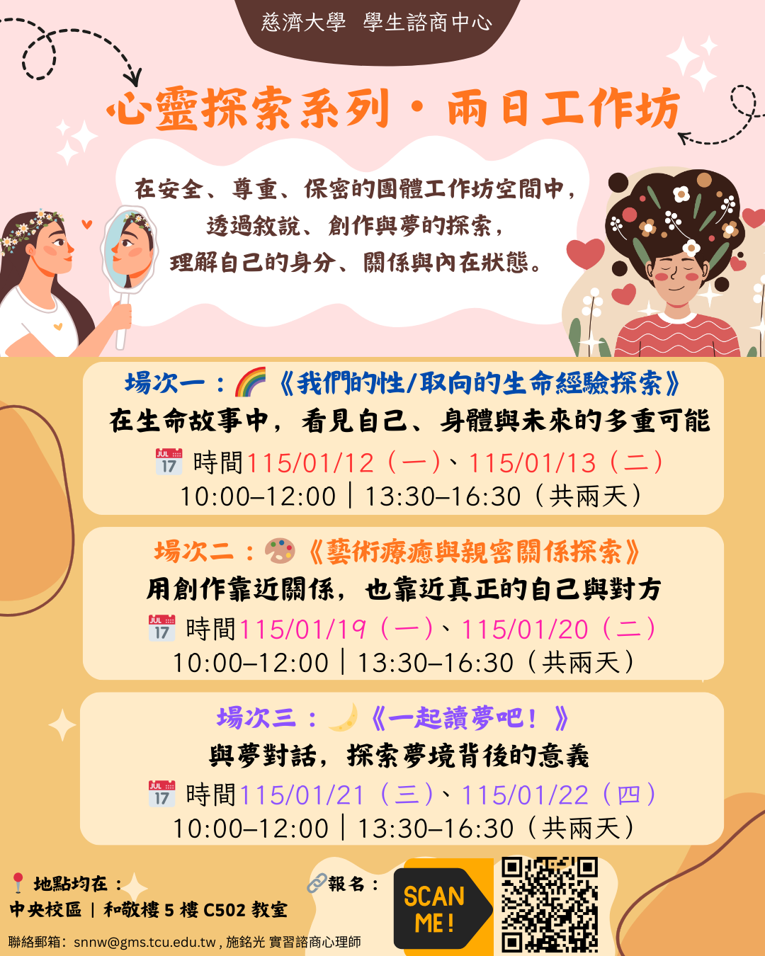 📌 每一場次皆為「兩日完整工作坊」,請確認可全程參與後再行報名。