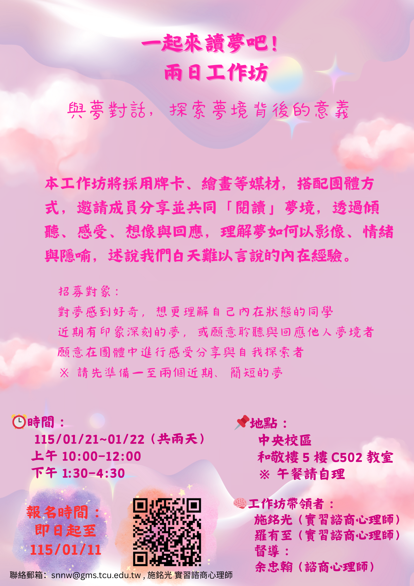 第一場次:即日起至 115/01/04(日),報名結果將於截止時間隔日以 Email 通知