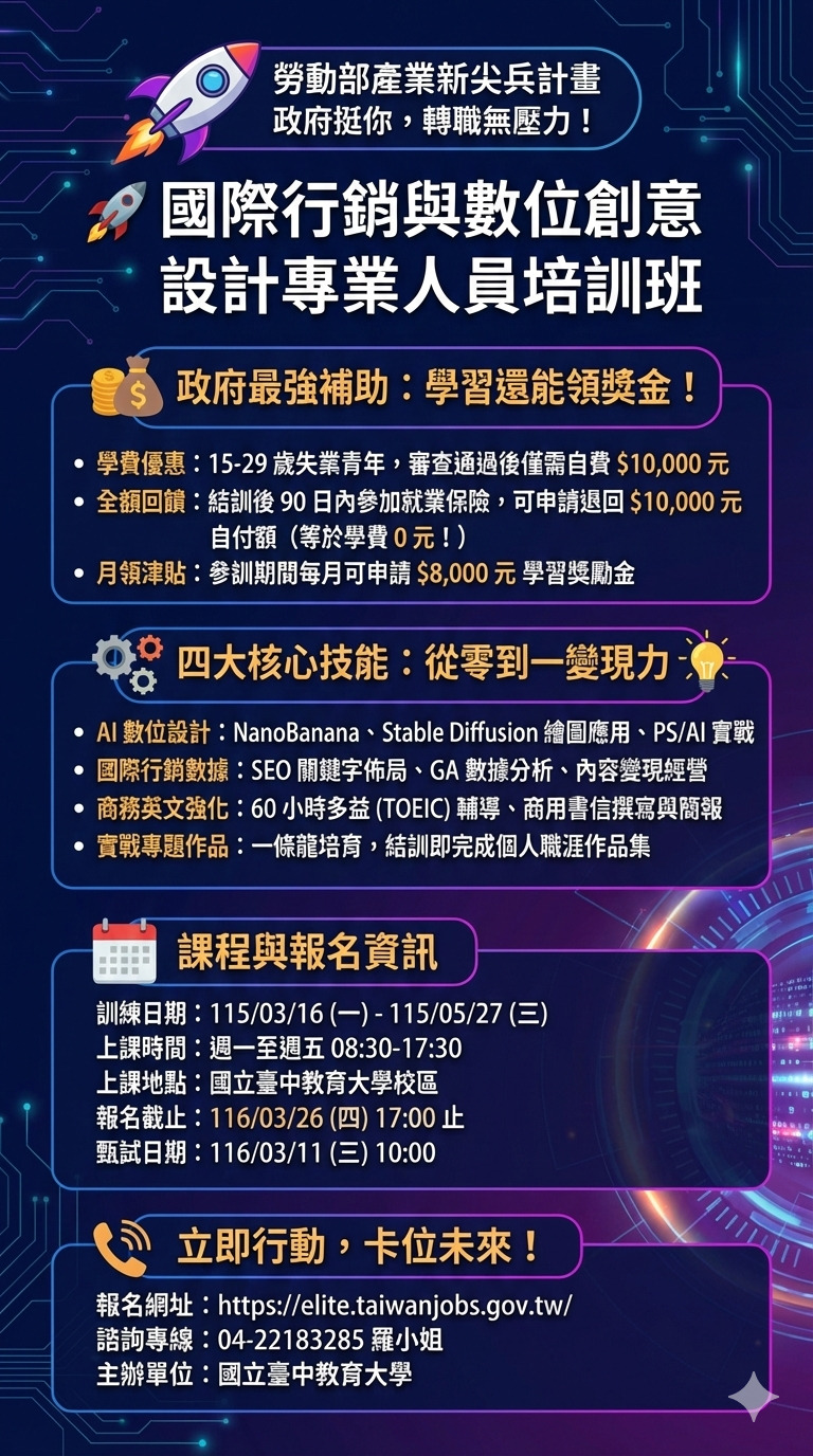 II. Eligible participants receive full government subsidy for training fees and may receive up to NT$8,000 per month in learning incentives during the training period.