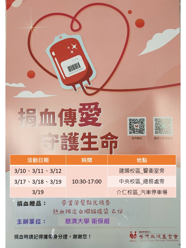 歡迎符合健康捐血資格者,一起來響應捐血活動。