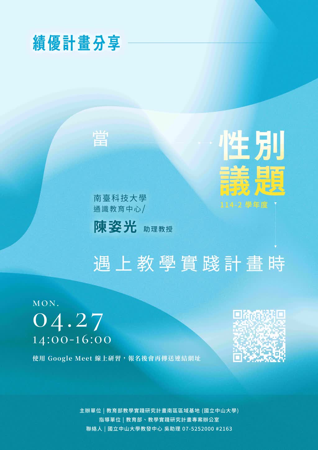五、全程參與者將核發教師研習時數證明。隨函檢附海報電子檔,請協助轉知並宣傳。