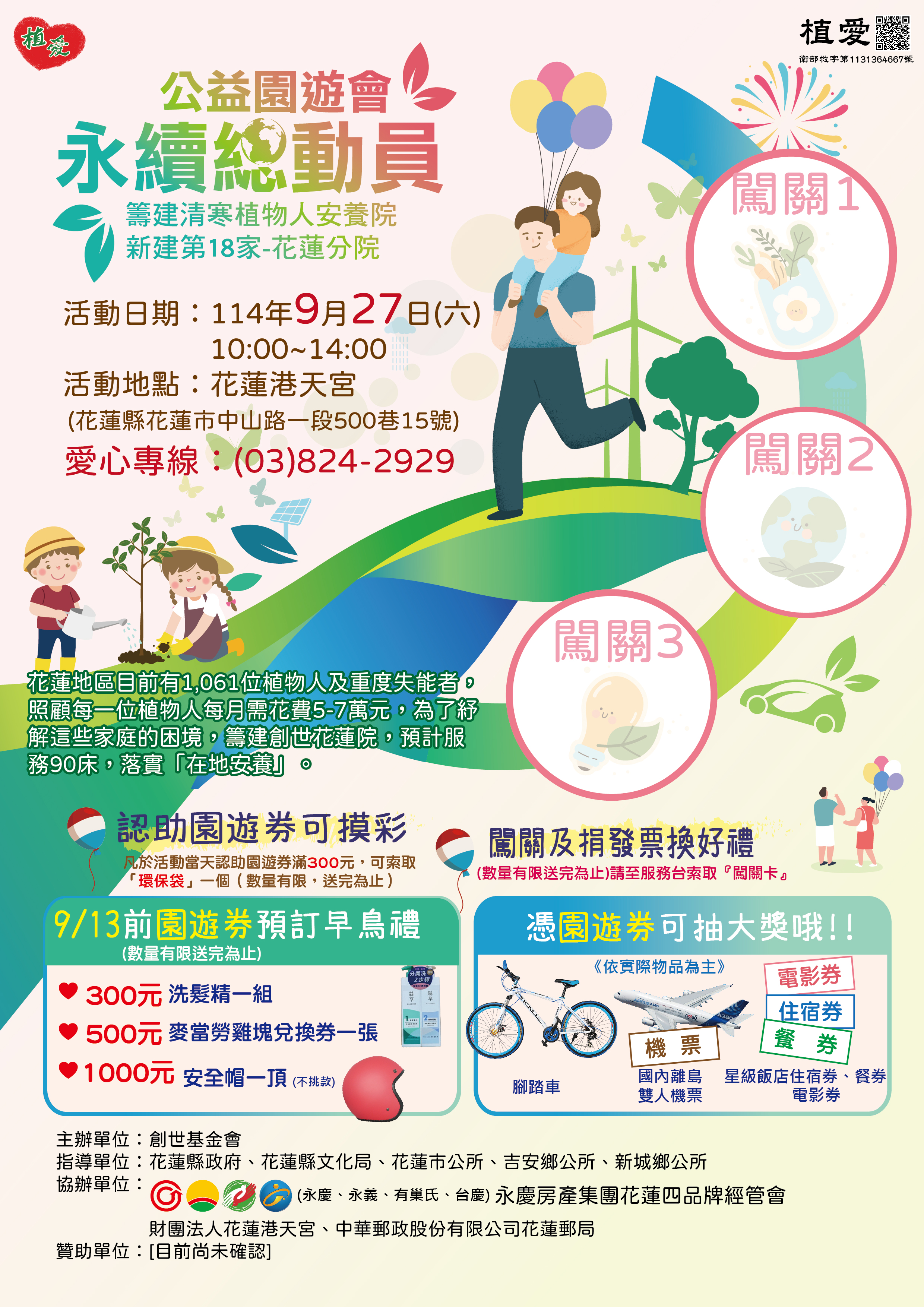 | 主 旨 【志工招募】創世基金會永續公益園遊會,歡迎踴躍報名參加志工服務 | |||