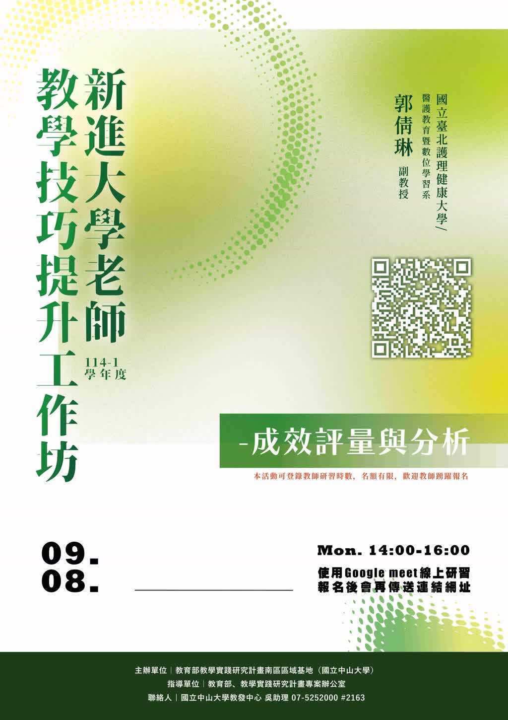 (一)主題:新進大學老師教學技巧提升工作坊-成效評量與分析